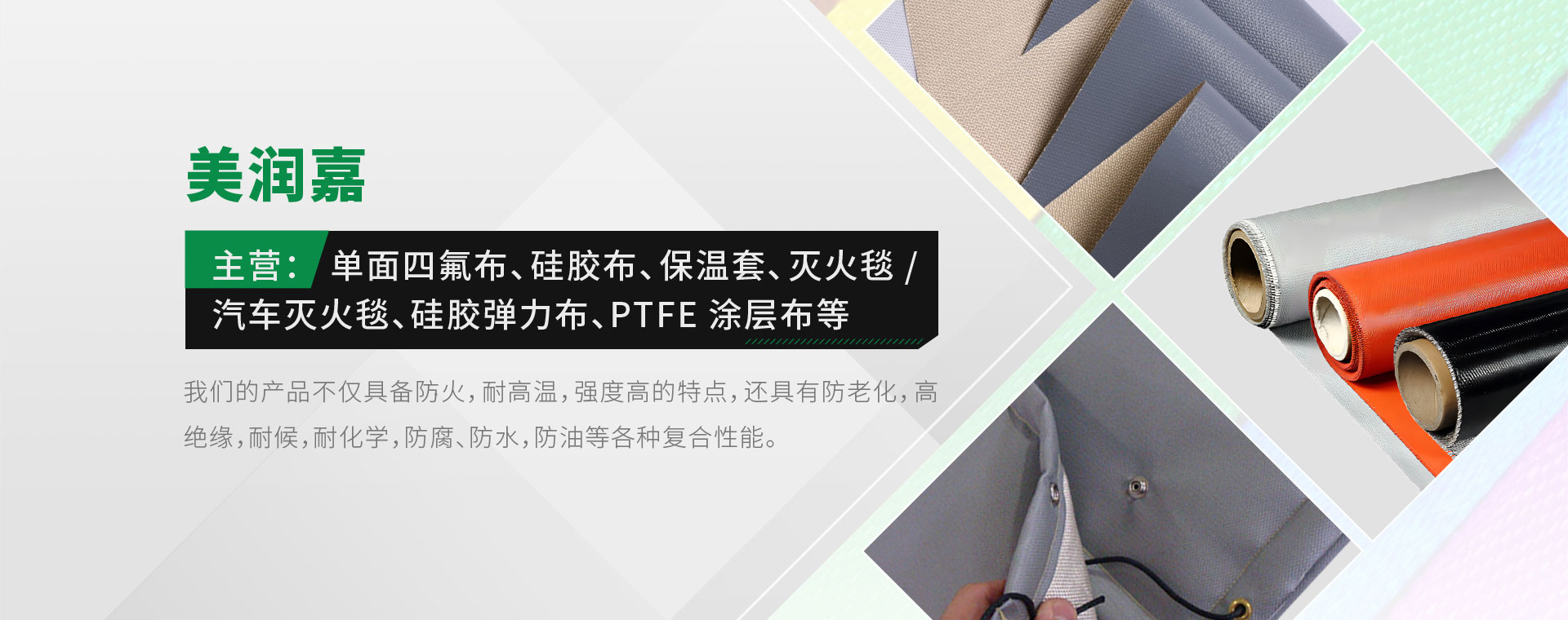 泰兴市美润嘉材料科技有限公司前身是江苏美润节能科技有限公司,2015年成立,是一家集科研、设计、生产、销售、定制为一体的科技创新型老牌企业。美润嘉生产的耐高温阻燃防火布广泛应用于多个领域。在保温工程中可用作可拆卸保温套,隔热保温效果好,降低成本;在大型公共场所(如购物中心、展览馆、地铁进出口)中,可制作成防火挡烟帘,有效阻挡火灾蔓延;还可作为管道的非金属补偿器或柔性连接器件(软连接),解决热胀冷缩对管道的破坏问题等,服务行业遍布石油,化工,船舶修造,火电,通风设备,消防设备,安全劳保,热力管道,高铁,航空,矿山,冶炼等各种工业门类。