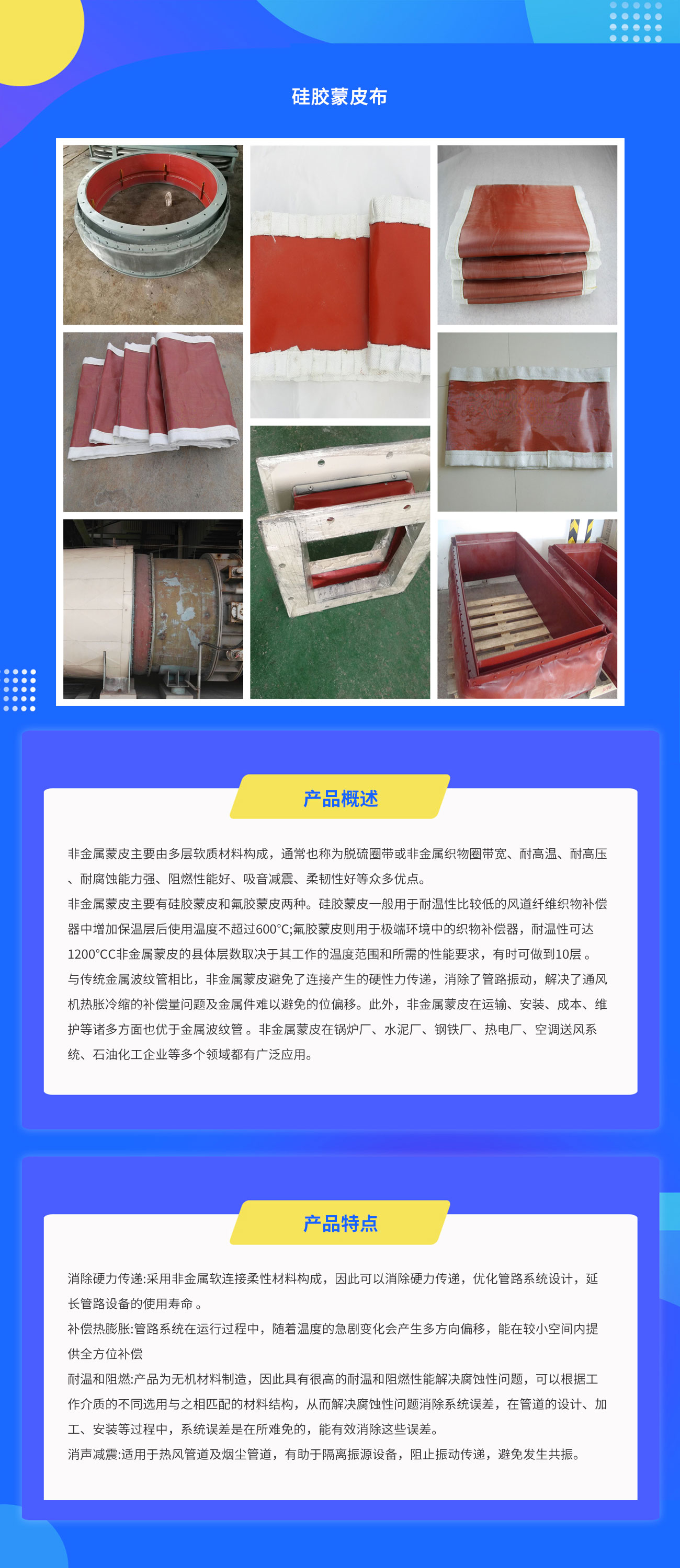 非金属蒙皮主要由多层软质材料构成,通常也称为脱硫圈带或非金属织物圈带宽、耐高温、耐高压、耐腐蚀能力强、阻燃性能好、吸音减震、柔韧性好等众多优点。